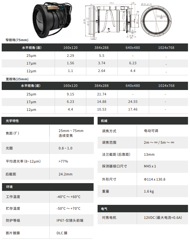 以下僅為示例,更多鏡頭參數請提交咨詢獲取